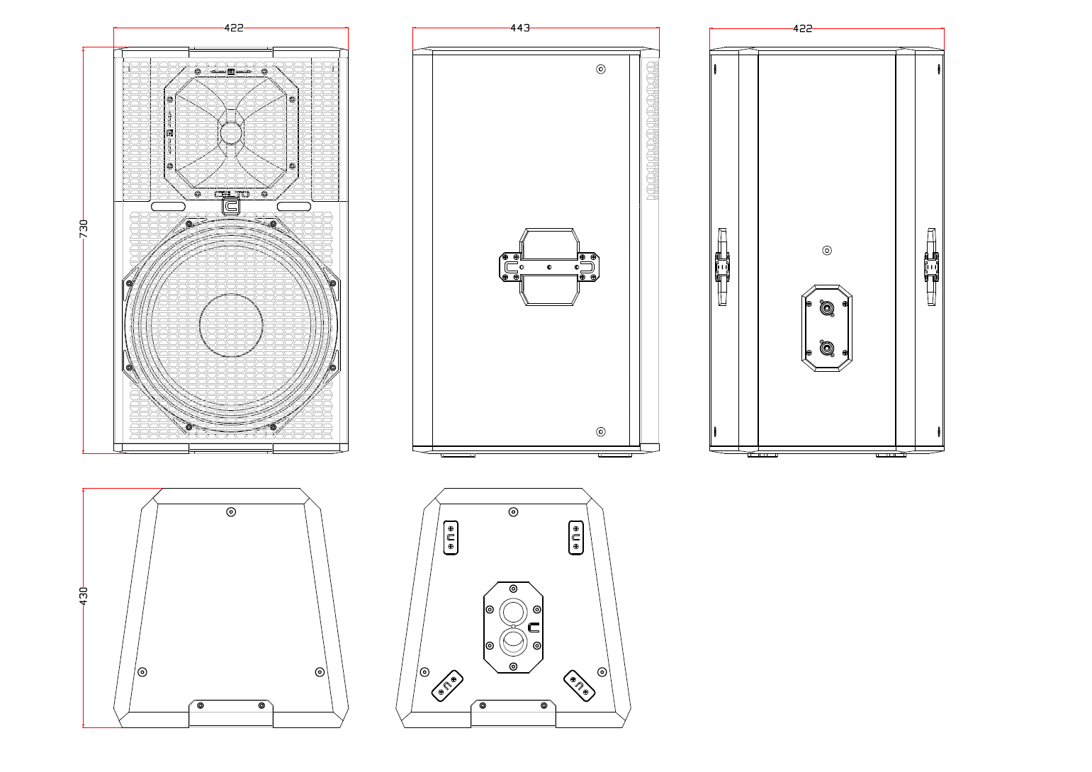 Multiple M8 flying points for versatile installation